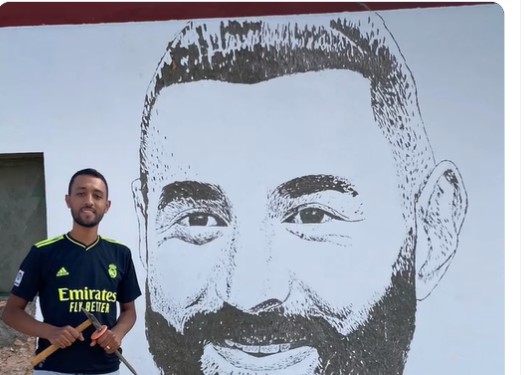 ونشرت الصفحة الرسمية لريال مدريد شريطا يوثق لحظة إبداع الفنان المغربي في رسم كريم بنزيما، وقد حصد الفيديو آلاف الاعجابات وأزيد من مليون مشاهدة.