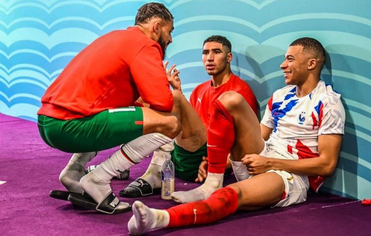 وجه كيليان مبابي نجم منتخب فرنسا، رسالة إلى زميله في باريس سان جيرمان، أشرف حكيمي ظهير المنتخب المغربي, بعد فوز منتخب فرنسا على المغرب بهدفين دون رد، مساء اليوم الأربعاء، في نصف نهائي كأس العالم، على ستاد البيت. ونشر مبابي، صورة له مع أشرف حكيمي عقب المباراة، على حسابه بموقع التواصل تويتر، وكتب عليها “لا تحزن يا أخي.. الجميع فخور بما فعلته.. لقد صنعت التاريخ”.