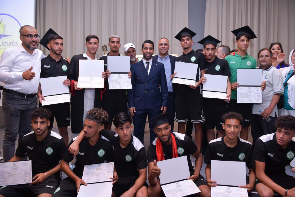 وجاء الإعلان عن النتائج خلال تنظيم أكاديمية نادي الرجاء الرياضي لكرة القدم و مؤسسة جون جوريس للتربية و التعليم، للقاء تواصلي للاحتفاء بالتلاميذ المتفوقين في امتحانات الباكالوريا، والرياضيين الشباب من الفوج الأول الحاصلين على شهادة الباكالوريا لموسم 2024/2023، و ذلك في إطار التنزيل الفعلي للتوجيهات الملكية السامية بدعم الطاقات الشابة، و الانخراط الفعلي في ورش التأهيل الرياضي و الدراسي.