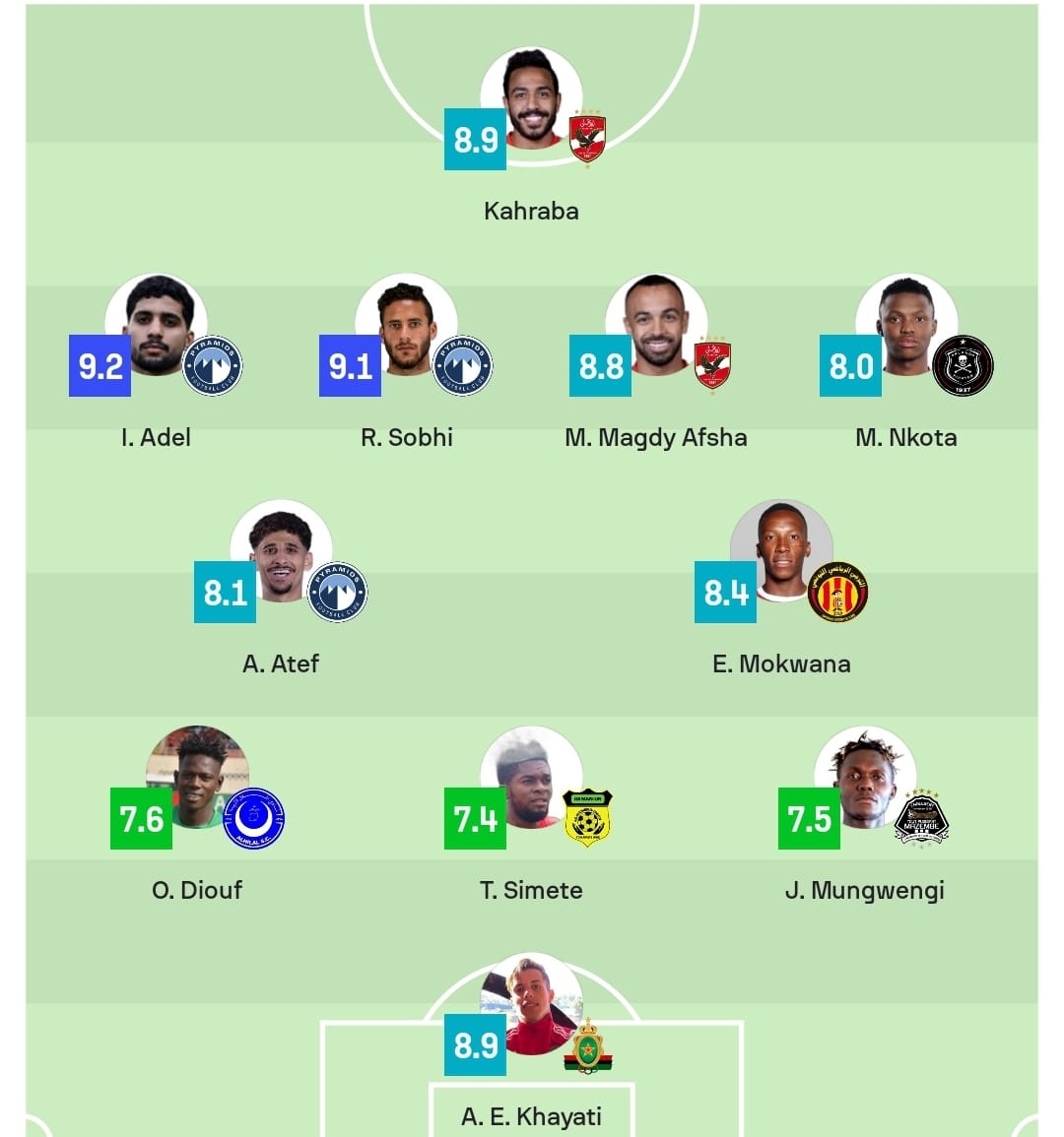 وقد جاءت تشكيلة الأسبوع التي كشفت عنها منصة “سوفا سكور” على الشكل التالي:
