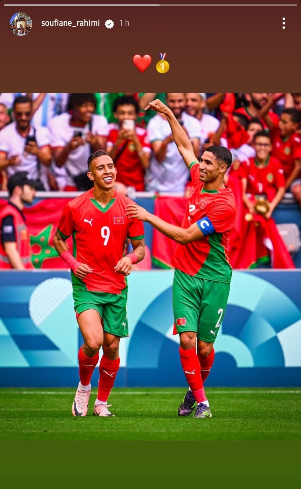 ونشر رحيمي صورة تجمعه بحكيمي عبر خاصية “السطوري” على حسابه في منصة “إنستغرام”، مع إضافة رمزي القلب والمركز الأول، في إشارة إلى أحقية أشرف حكيمي بالجائزة التي ذهبت لصالح النيجيري لوكمان.
