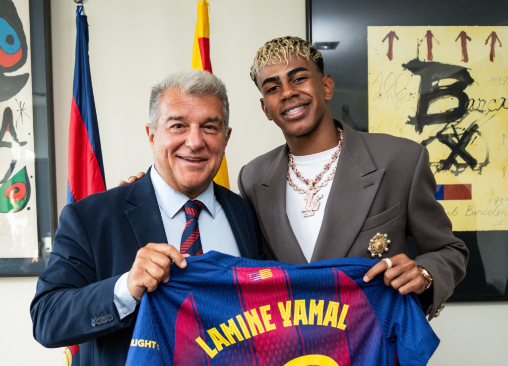 وقد أقام النادي الكتالوني مؤتمرًا صحفيًا خصيصًا لهذه المناسبة، تم خلاله توقيع العقد الذي يربط يامال بقلعة البلوجرانا حتى صيف 2031.